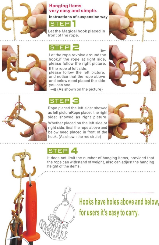 We can use "Magical Hook” with any style or size rope to solve all the things misplacing, always cannot find problem whether at home or outdoors.