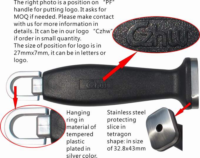 The producing cost of “PF” handle is very high & the shape is artistic. Logo can be put on handle. It will be the best choice if customers consider to put logo on handle & selling their products in high end level.