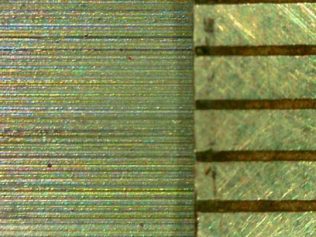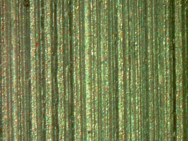 You can find the picture for sharpening steel of detailed enlarged in 50 times which we produced. For the right side, there are 6-7 stripes per 1 m/m at the space of one frame.